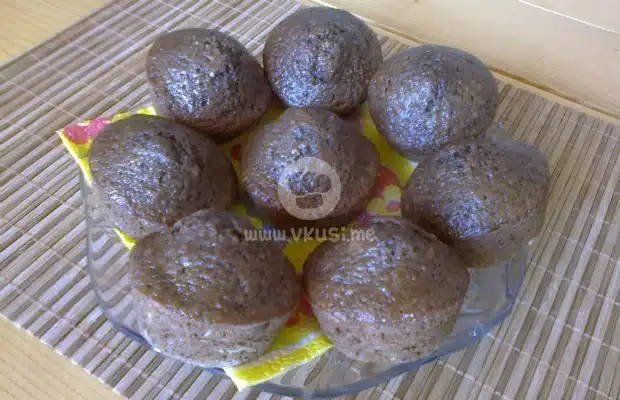 Разпределяме сместа във форма за мъфини 12 броя, намазани с олио и посипани с брашно. Пекат се в загрята фурна на 180 градуса.