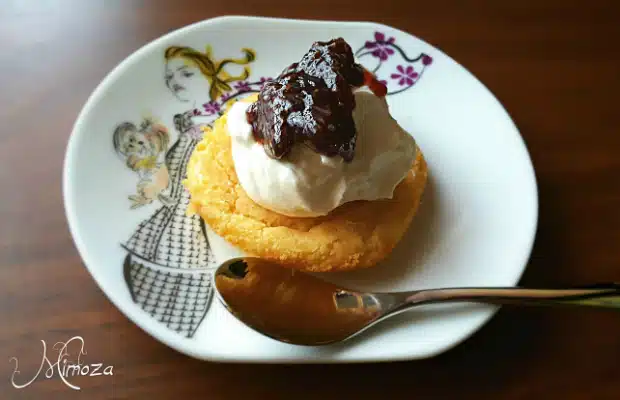 Гарнират се по желание. Моите са със заквасена сметана и домашно сладко от ягоди.