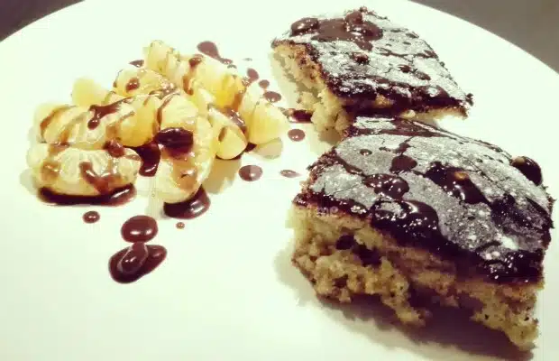 Докато кексът се пече разтапяме шоколада на водна баня и изчакваме изпичането на сладкиша. Накрая заливаме кекса с шоколада. За декорацията може да се използва и пудра захар.