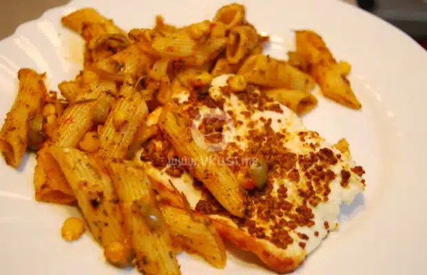 Малко преди да извадите макароните, добавете плочки бяло краве сирене, върху което сте сложили от ретро горчицата. Запечете добавеното сирене за още около 10-15 минути. Така мароканската паста е готова! Приятен апетит!