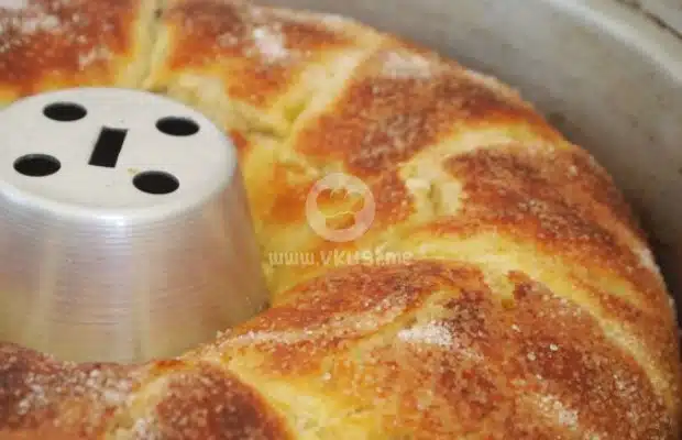 Яйцата се разбиват със захарта до побеляване, постепенно се добавя разтопеното и леко охладено масло (или олио). Прибавят се втасалата мая, ванилиите, кора от лимон и брашно, колкото да се получи меко тесто.