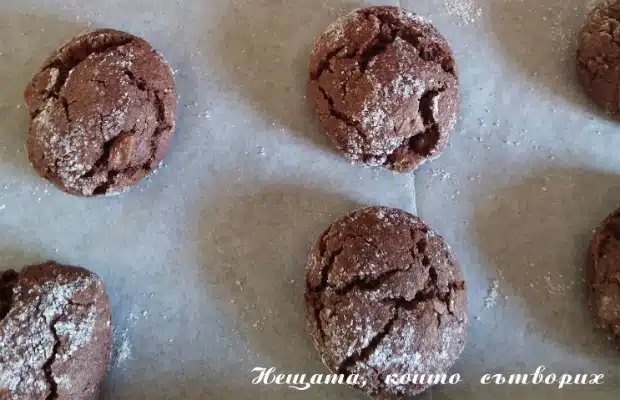 Печем сладките за 10-15 минути, докато те се напукат. Получават се леко твърди отвън и меки по средата.