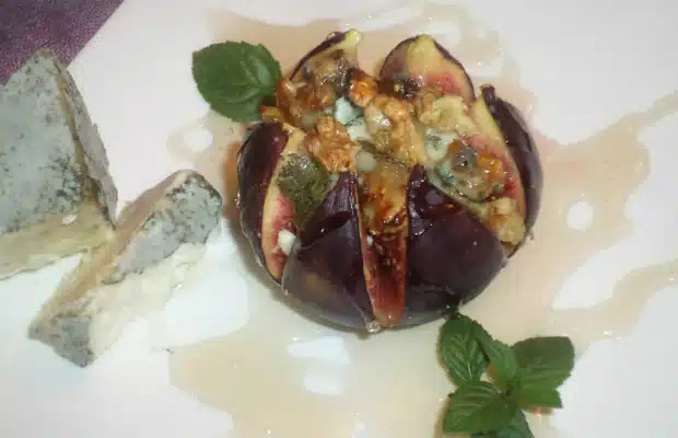 Разрязвате смокините на четири или шест през върха, като не стигате до дъното. Натрошавате сиренето и ядките и пълните смокините. Отрязвате парчета алуминиево фолио и го оформяте като паничка. Поставете всяка смокиня в него. Слагате ги в плитка тавичка. Поливате с малко зехтин всяка и печете в загрята фурна за кратко. След като извадите смокините още топли ги заливате с мед.