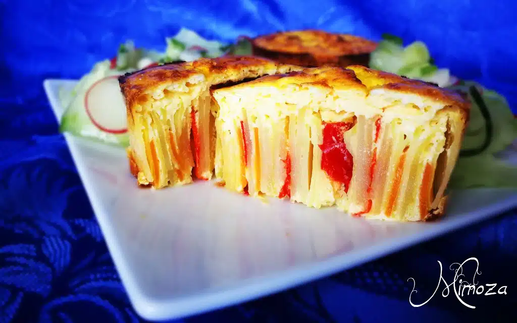 Днешното ми ястие е вариация на тема киш. Спаси ме в момент, в който трябваше да приготвя нещо бързо, вкусно и ефектно. Продуктите са за два малки киша. Може да ги увеличите и да изпечете ястието в по-голяма тавичка.