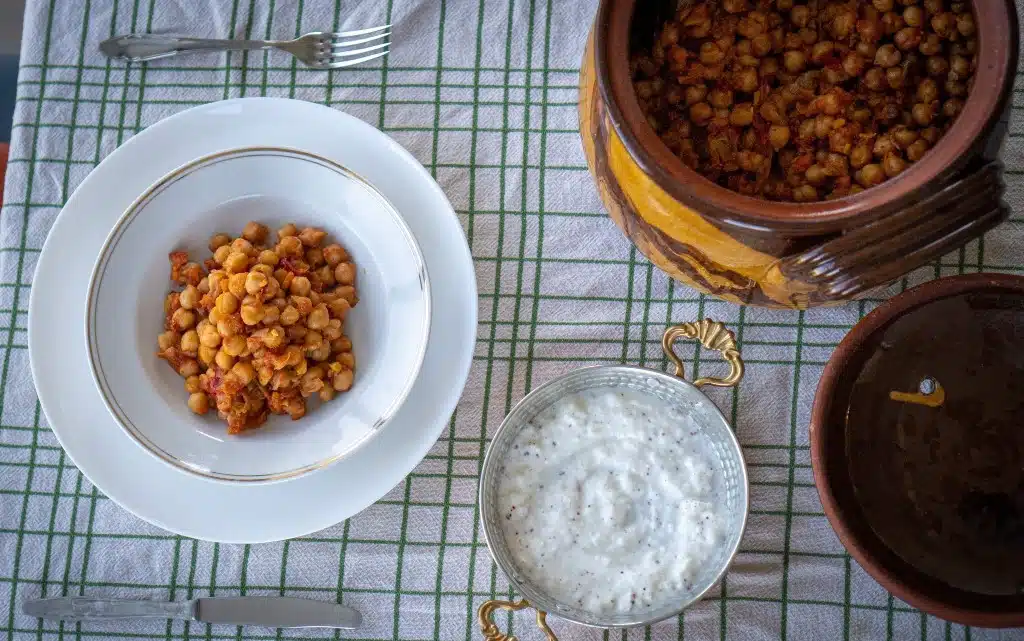 Нахутът се накисва за една вечер, след което се измива и слага в тенджера с вода, за да заври. Прецежда се и се прехвърля в глинен съд (ако използвате готов нахут от буркан, тези процедури не са необходими, времето за готвене също се съкращава много).