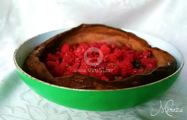 Палачинката се приготвя много бързо и е изключително ефектна. Щом я пъхнете във фурната и магията се задейства. Сместа започва да се „катери“ по стените на тавичката и изглежда сякаш иска да стигне горните реотани на фурната. 🙂 Нямах търпение да я извадя!