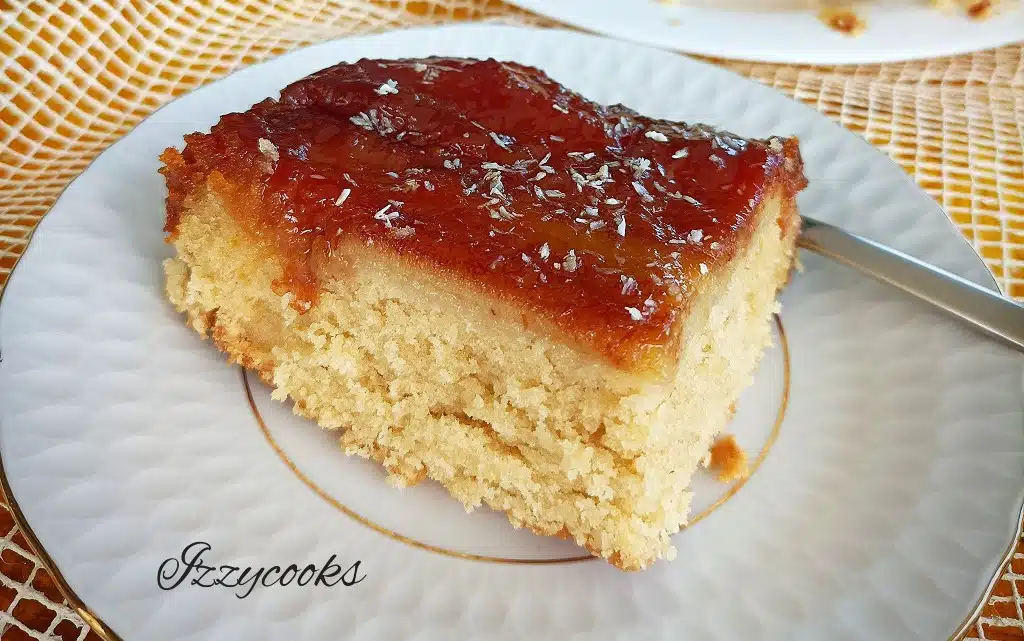 След като сладкишът е готов го оставяме да изстине във формата за 5-8 минути, след което го обръщаме върху голяма чиния. Отстраняваме хартията и когато се охлади напълно, нарязваме на парчета.