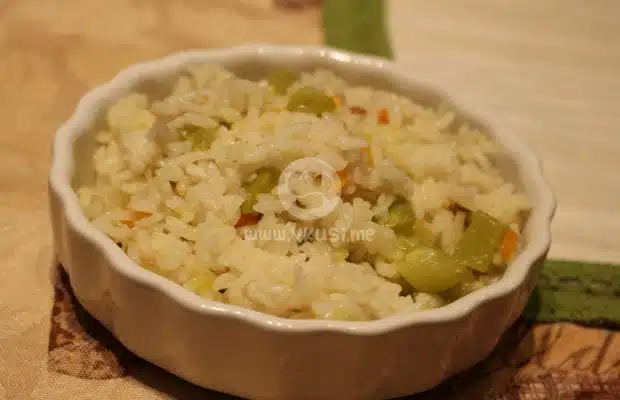 На програма FRY за около 10-15 минути запържваме зеленчуците. След това добавяме измитият ориз и запържваме за още 10-ина минути. Добавяме течността според мерителните означения на уреда, подправяме и пускаме уреда на програма RISOTTO, която за моя уред е с фиксирано време от 40 мин.