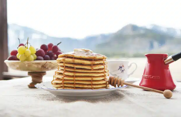 От сместа се оформя 1 или повече палачинки в размер по избор, които се изпичат на незалепващ тиган. Готовите палачинки можете да овкусите с лъжица мед.