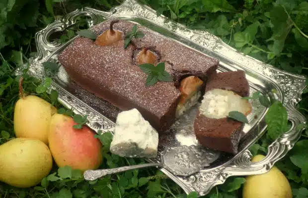 Намаслете и поръсете с брашно правоъгълна тава. Сипете кексовата смес и сложете крушите отгоре на малко разстояние една от друга.