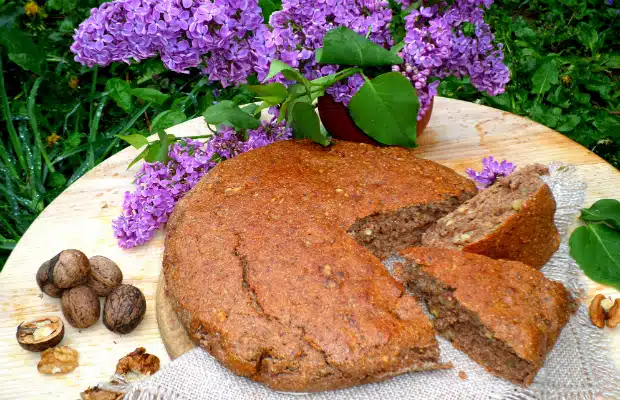 С мокри ръце се оформя питка и се слага в покрита с хартия за печене тавичка. Хлябът се пече 40-50 мин. в загрята фурна на 180 градуса.