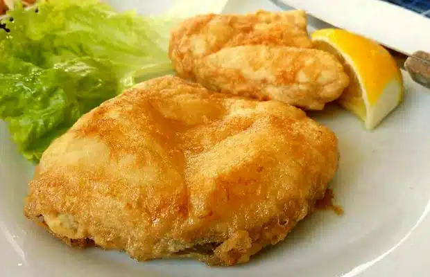Рецептата е взаимствана от идея на Джейми Оливър и е изключително сполучлива, а също така е стандартна панировка за всякаква бяла риба, така че може да я използвате за акула, треска, мерлуза или хек.