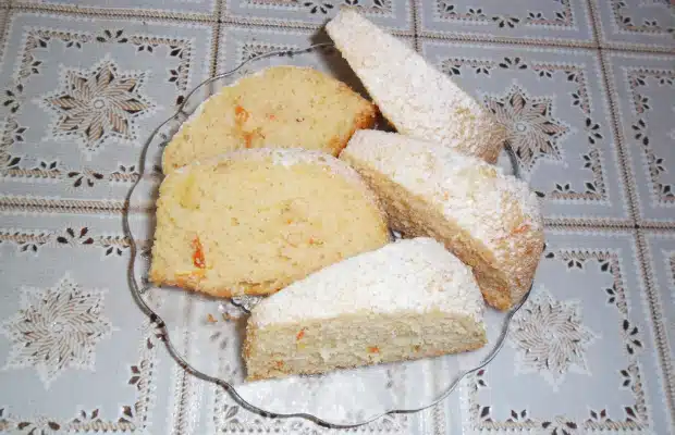 От всички продукти се приготвя кексово тесто. Настъргва се кора от мандарина и се пече във загрята фурна. Кексът се обръща след като се изпече и отгоре се поръсва с пудра захар. Любим на всички във семейството.