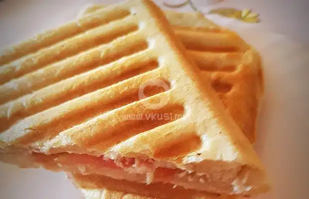 Пърленка на тостер с домат, сирене и кашкавал