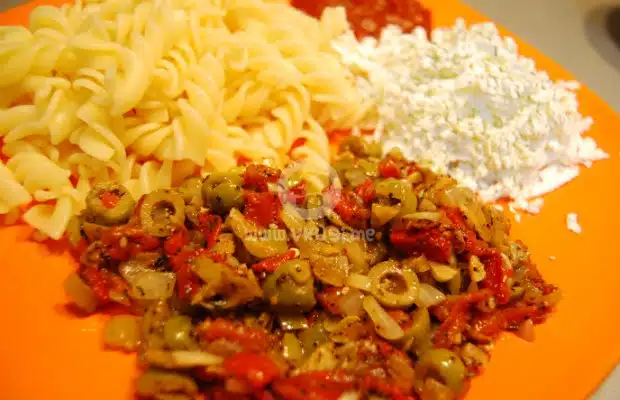 Около пастата слагате от сос „Пипероне“, настъргано бяло сирене, както и букетът от зеленчуци и подправки. За добро настроение можете да се подкрепите и с чаша бира! Добър апетит!