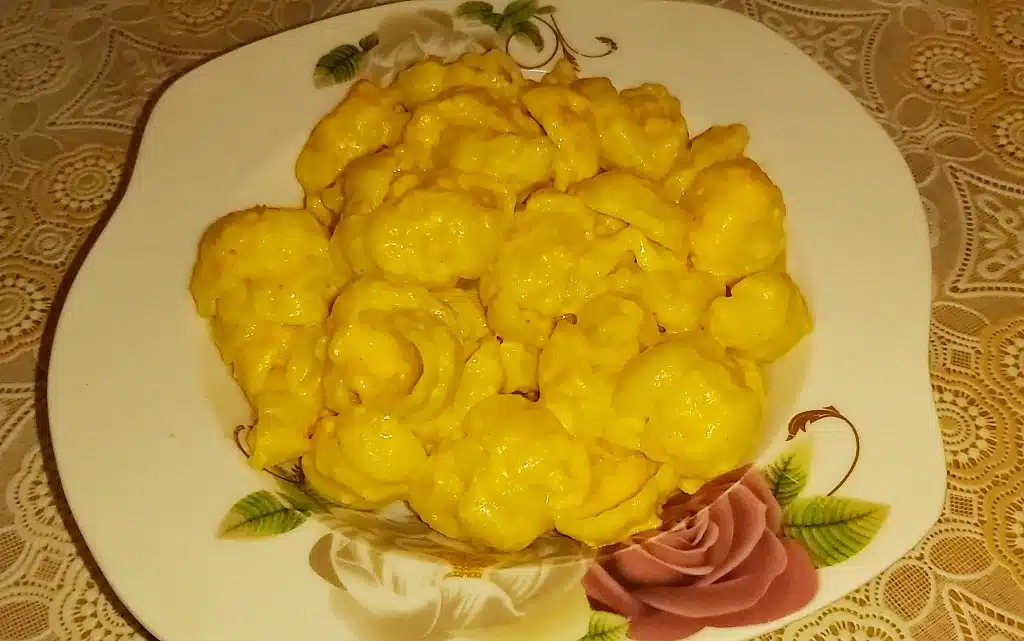 В тенджера разтопяваме маслото, добавяме брашното и бързаме до поемането му. Наливаме прясното мляко и настъргания чедър. Добавяме индийското орехче и посоляваме. Бъркаме до сгъстяване.