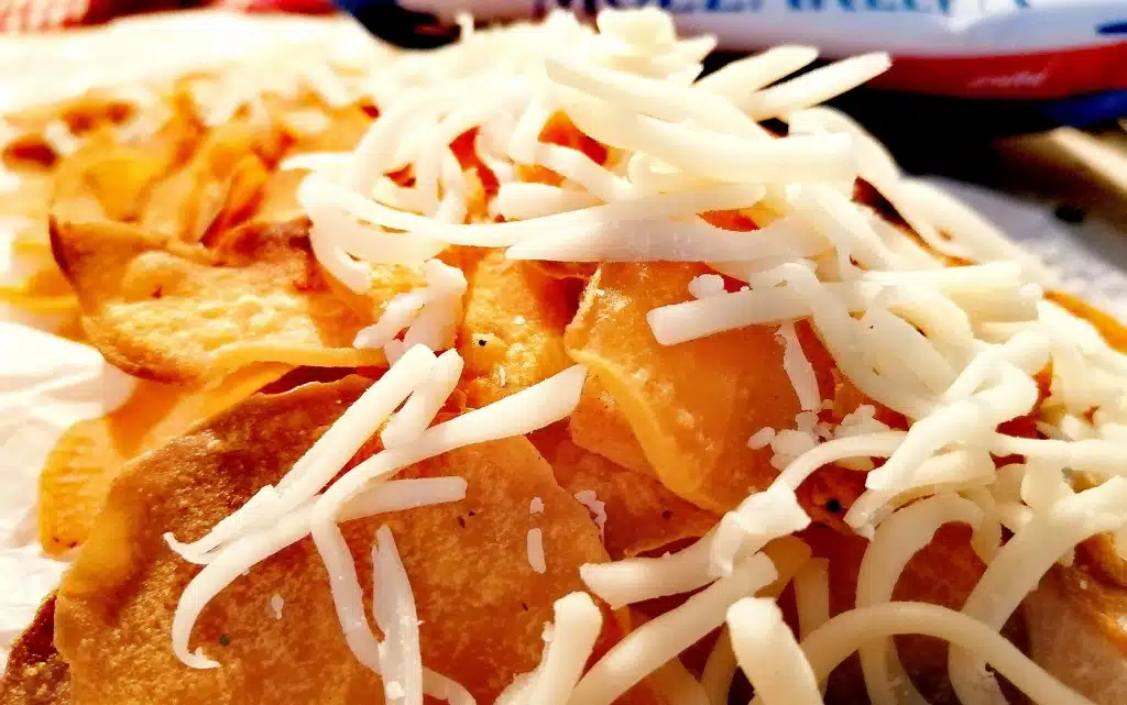 Поднасяме готовия и изстинал (за да е хрупкав) чипс с кетчуп или друг сос по желание. Можем да поръсим с настъргано сирене или моцарела.