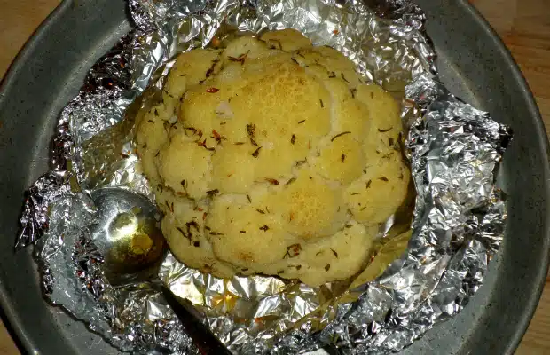 Когато карфиолът е готов, го нарежете и поднесете като гарнитура.