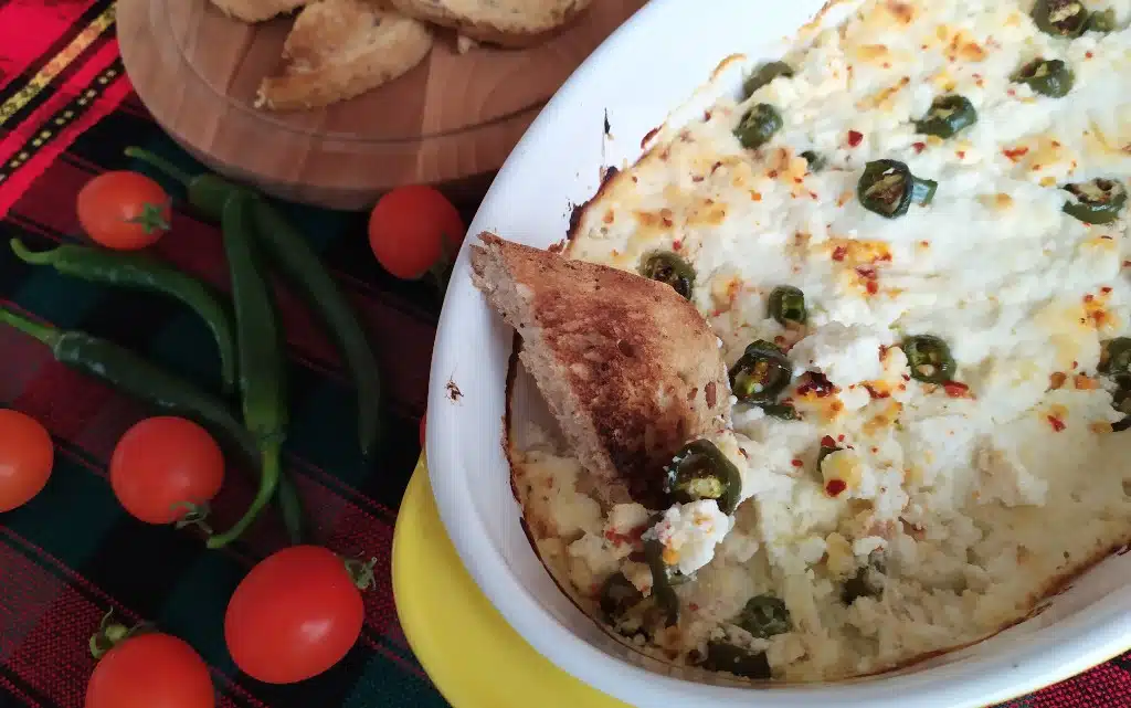 Твърдото бяло саламурено сирене се натрошава и се смесва с крем сиренето, сметаната и зехтина. Към тях се добавят нарязаните люти чушки и люспите лют пипер. Сместа се запича във фурна на 180 градуса до сгъстяване.