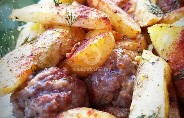 Всеки ден в кухнята цари веселие, защото най-вкусните гозби излизат от фурната… 🙂 Аз предлагам вкусно и лесно ястие с кюфтенца, картофи, пресни подправки и щипка любов. Ето и моето предложение.
