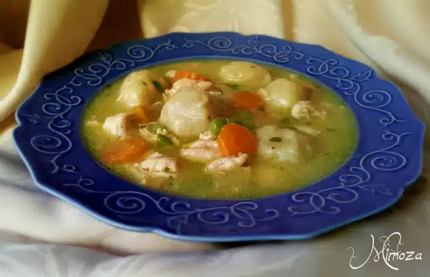 За мен това е най-вкусната пилешка супа, която някога съм правила или опитвала. Невероятен аромат, плътен вкус, засищаща и сгряваща. Досега не бях готвила пилешка супа с мащерка и подходих леко скептично, но след като опитах, не мисля, че има по-подходяща подправка за тази супа. Можете да пропуснете кнедлите, въпреки че те придават едно зимно очарование на супата.