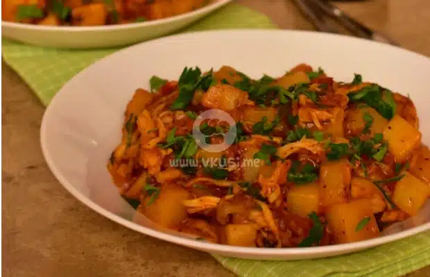 Преди поднасяне поръсете всяка порция с останалия магданоз.