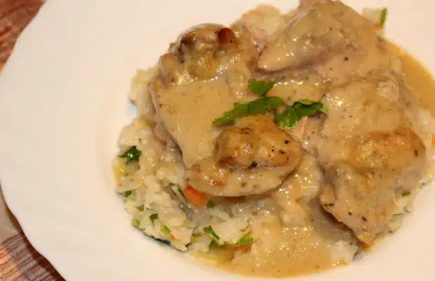 Оставяме да се готви за още 10-15 минути във фурната, докато сосът се сгъсти. Поднасяме с ориз, приготвен в мултикукър и пресен магданоз.