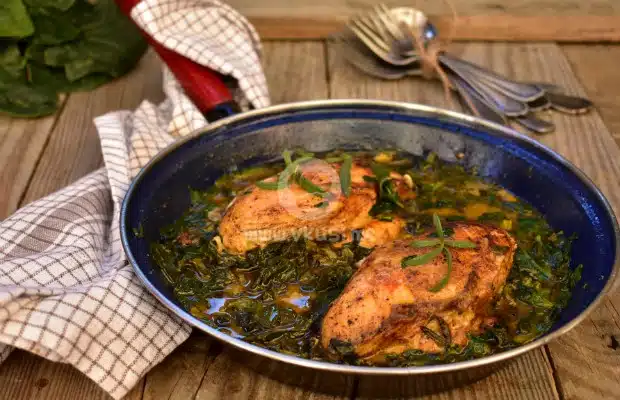 Предлагам ви страхотна идея за една по-различна вечеря за двама – пилешко със спанак и сос от бяло вино. 🙂