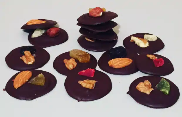 На всеки бонбон се слага ядка и сушен плод. Оставяте да се втвърдят.