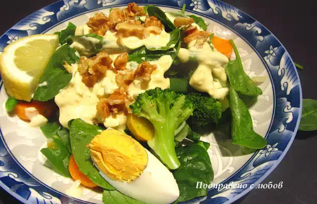 Ще си направим страхотна салата по рецепта на „Подправено с любов“. Спанакът тук е главният герой. Опитайте! 🙂