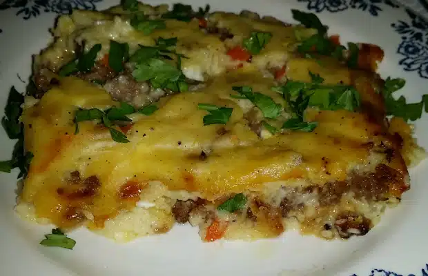 Вече обаче съществуват рецепти, които включват спанак, тиквички, ориз и различни видове меса. Изборът на продукти най-често зависи от това с какво разполагаме и какво имаме в хладилника. Както и да си я приготвим все ще стане вкусно. 🙂 Ето моето предложение за запеканка, на която трудно ще устоите.