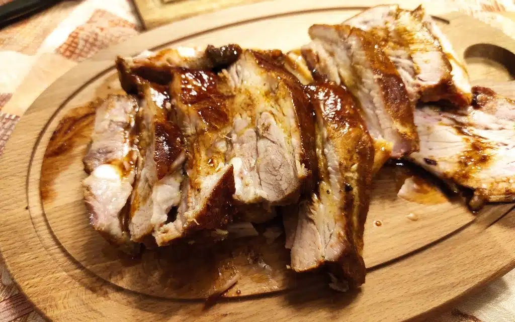 • 2 кг свински ребра (или гърди с ребра, цяло парче)