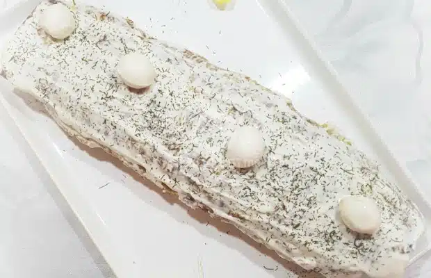 Руло от тиквички с млечен сос, копър и гъби