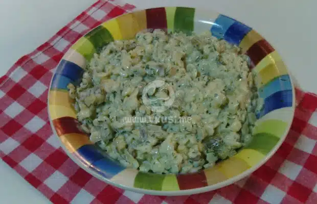 В основата на салатата ни днес ще бъде домашно приготвена майонеза. Събирайте приятелите около масата и наливайте смело охладените напитки. Наздраве! 🙂