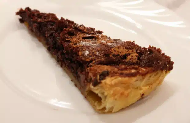След като сме премахнали боба/ориза или солта, охлаждаме тестото и го намазваме с течния шоколад. Отгоре внимателно се излива другата шоколадова смес. Печем за около 18-20 мин. на 170 градуса без вентилатор.