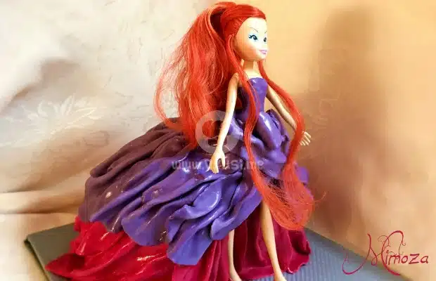 Украсих тортата с фондан. Затова я измазах с ганаш, приготвен от черен шоколад с високо съдържание на какао и течна сладкарска сметана в съотношение 3:1. Шоколадът се нарязва на ситно и се залива със завряла сметана. Оставя се за няколко минути и се разбърква до получаване на плътен шоколадов крем. Ако се наложи, сместа се загрява на водна баня. Оставя се да се охлади до стайна температура.