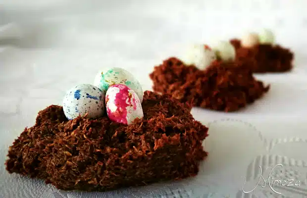 Миналата година за Великден ви представих рецепта за малки и сладки кокосови гнезда. Тази година предложението ми е подобно, но силно ориентирано към любителите на шоколада.