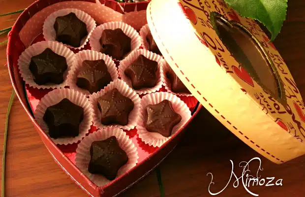 Шоколадовата смес се изсипва в силиконови форми за бонбони и се прибира в хладилника за около час-два, докато бонбоните стегнат.