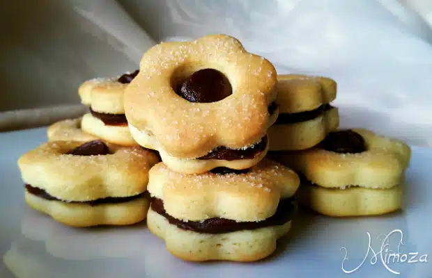 Тестото се разточва върху леко набрашнена повърхност. Дебелината трябва да е около 6-7 мм. Изрязват се формички, с помощта на резец за сладки, и се нареждат на разстояние една от друга върху застлана с хартия за печене тава. В половината от сладките се изрязва кръгло отворче. Тези сладки се поръсват със захар преди печене.