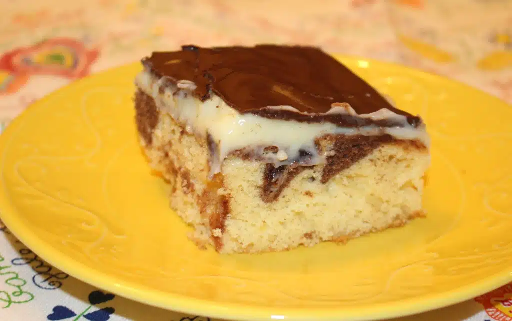 Разбиваме маслото със захарта и след това добавяме яйцата едно по едно. Пресятото брашно с бакпулвера добавяме към сместа и бъркаме, докато стане гладка и хомогенна. Отделяме една трета от тестото и към него добавяме прясното мляко и какаото.