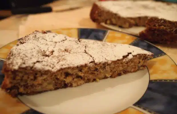Пресяваме сухите продукти и прибавяме и тях. Накрая добавяме орехите и разбъркваме добре.