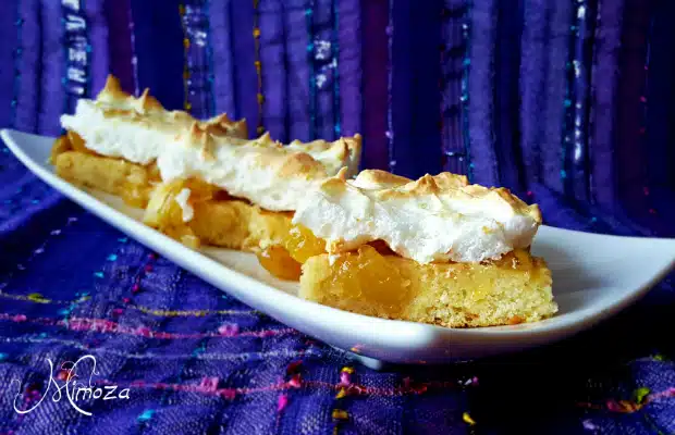 Белтъците се разбиват с пудра захар на вкус, до получаване на твърди лъскави върхове. Сместа се разпределя върху сладкиша. Запича се на горен реотан в умерена фурна, до получаване на златисти връхчета.
