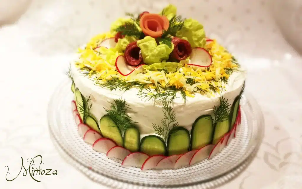 Днешната рецепта е много позната на повечето от вас. Моята баба редовно за празничните ни събирания приготвяше палачинкова торта. Но нейната честно казано беше тежка. За плънка слагаше руска салата, майонеза и тежки мезета. И въпреки че тогава тази торта беше само за предястие, изяждайки едно парче от нея, вече си преял. Затова аз исках да направя по-лека интерпретация на тази класика.
