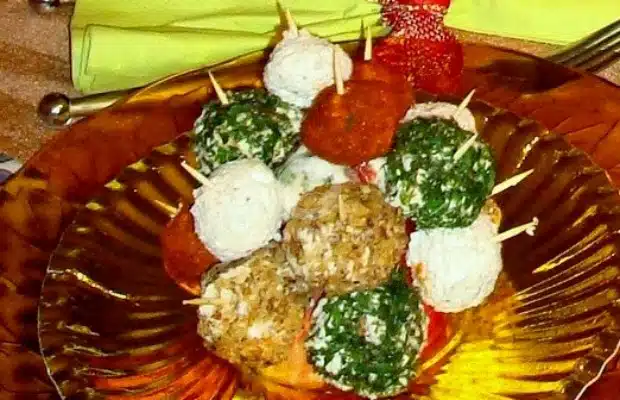 На другият вид слагам лешник в средата и овалвам в ситно нарязани пресни зелени подправки, а третият вид овалвам в смлени ядки (орехи).