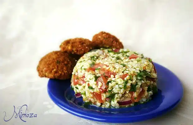 Булгурът се сварява в леко подсолена вода. Необходими са му 20 минути. През това време се нарязват останалите продукти на ситно. Булгурът се измива със студена вода и всичко се разбърква добре. Салатата се овкусява със прясно изцеден сок от половин лимон, сол и зехтин. Остава се да престои десетина минути преди сервиране.