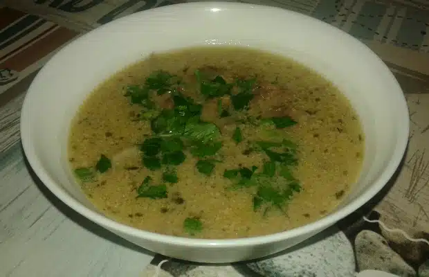 Подправяме със сол, черен пипер и мащерка. Количество течност определя гъстота на супата, но тази супа трябва да остане по-гъста, затова не прекалявайте с количеството на водата.