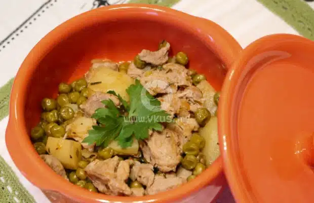 Ако ви се хапва вкусна домашна манджичка, днес във „Вкусноландия“ ви предлагам идея каква да бъде тя. Трябват ви крехко телешко месце, малко грах и картофки. Добър апетит! 🙂