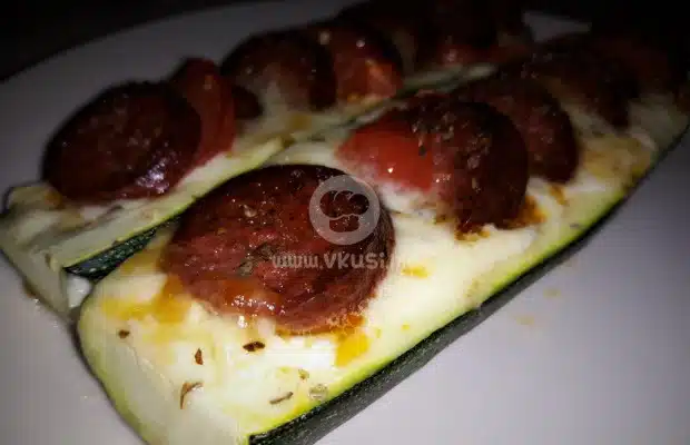 Сега към приготвянето. Разрязваме измитите тиквички на две по дължина и издълбаваме с лъжица сърцевината им. Подреждаме ги в тава, върху хартия за печене. Пълним лодките първо с настърган кашкавал. Отгоре започваме да подреждаме – парченце чоризо, домат, парченце моцарела. Поръсваме с малко риган и съвсем малко сол и печем на 180 градуса за 20 минути. Това е. Лесно и вкусно ястие за летните вечери след тежък работен ден.