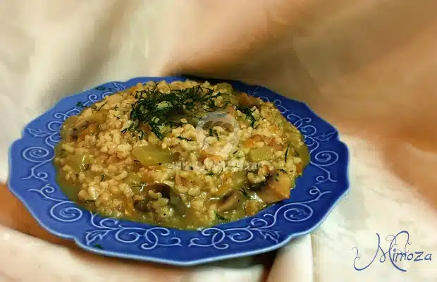 * Ястието може да се приготви и във фурна. След като се запържат зеленчуците и оризът, се прехвърлят в тава. Заливат се с 3 ч.ч. вода и се пекат, докато оризът поеме течността. По желание се прави заливка от 200 г. кисело мляко, 2 с.л. брашно и 2 яйца.