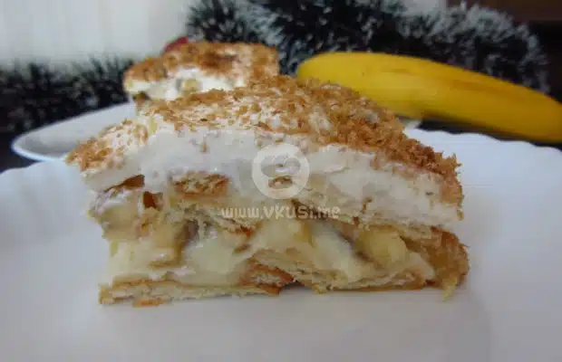 Торта „Бананов сплит“ с карамелизиран кокос и крем Шантили